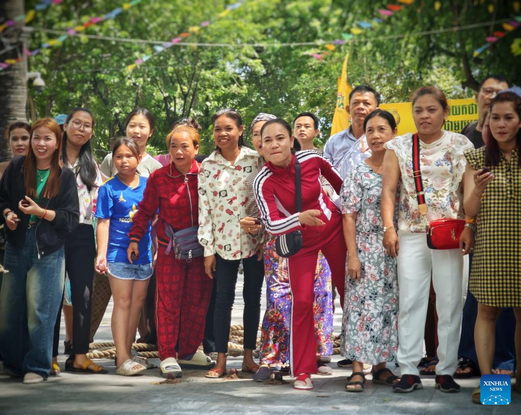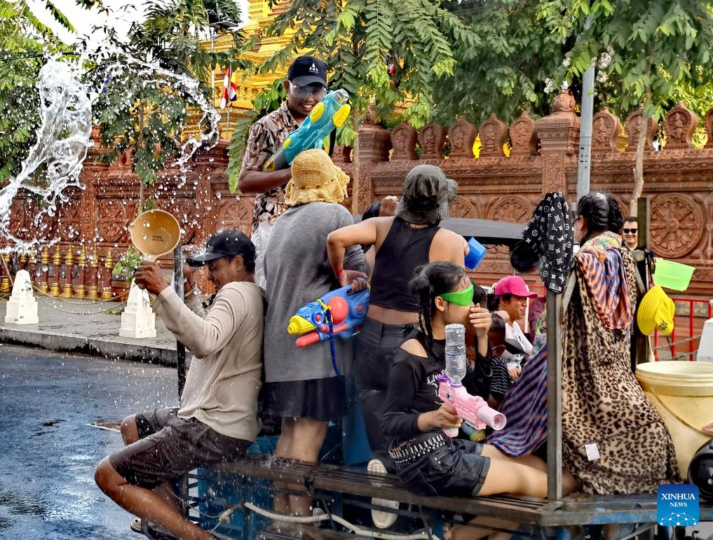 People participate in an activity to celebrate the Cambodian New Year in Phnom Penh, Cambodia, April 14, 2025. Phnom Penh, capital of the Kingdom of Cambodia, is located beside the confluence of the Mekong and Tonle Sap rivers. The coexistence of traditional architecture and modern buildings endows the city with life and vitality. (Xinhua/Liu Weibing)