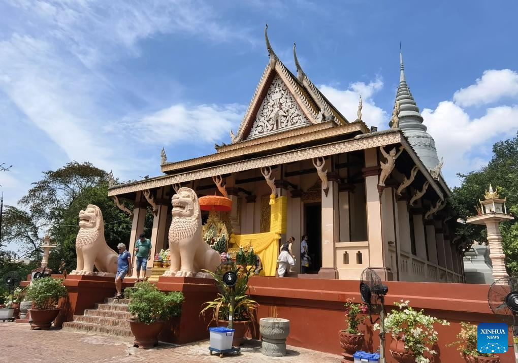 People visit Phnom Penh in Cambodia, April 14, 2025. Phnom Penh, capital of the Kingdom of Cambodia, is located beside the confluence of the Mekong and Tonle Sap rivers. The coexistence of traditional architecture and modern buildings endows the city with life and vitality. (Xinhua/Liu Weibing)
