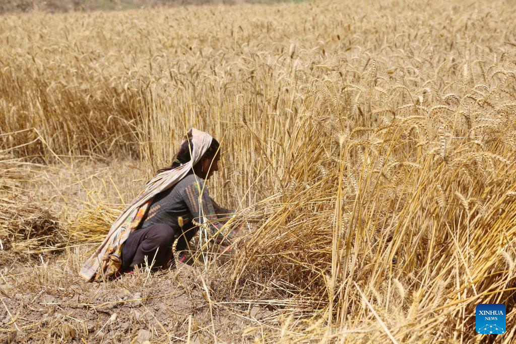 A farmer harvests wheat at a field in Multan, Pakistan on April 20, 2025. (Photo by Mansoor Abbas/Xinhua)