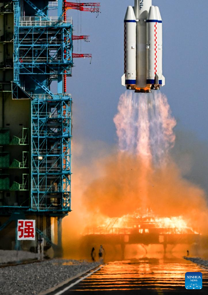 The Shenzhou-20 crewed spaceship, atop a Long March-2F carrier rocket, blasts off from the Jiuquan Satellite Launch Center in northwest China, April 24, 2025. China successfully launched the Shenzhou-20 crewed spaceship on Thursday, sending three astronauts to its orbiting space station for a six-month mission. (Xinhua/Lian Zhen)