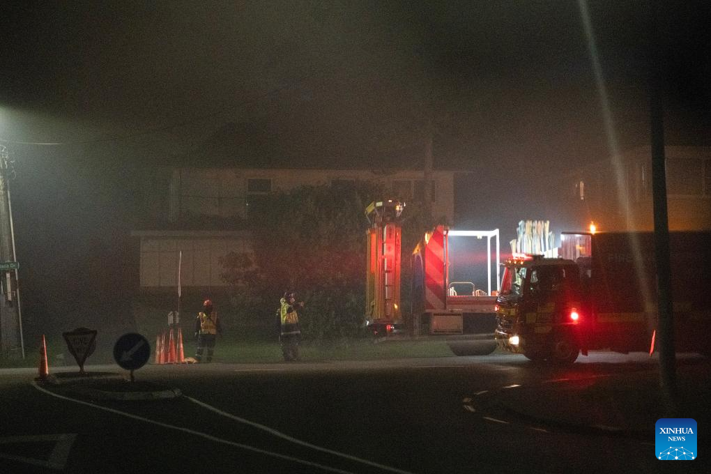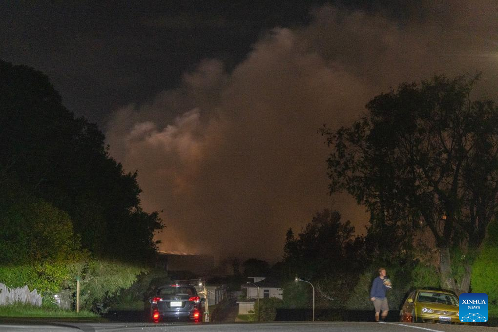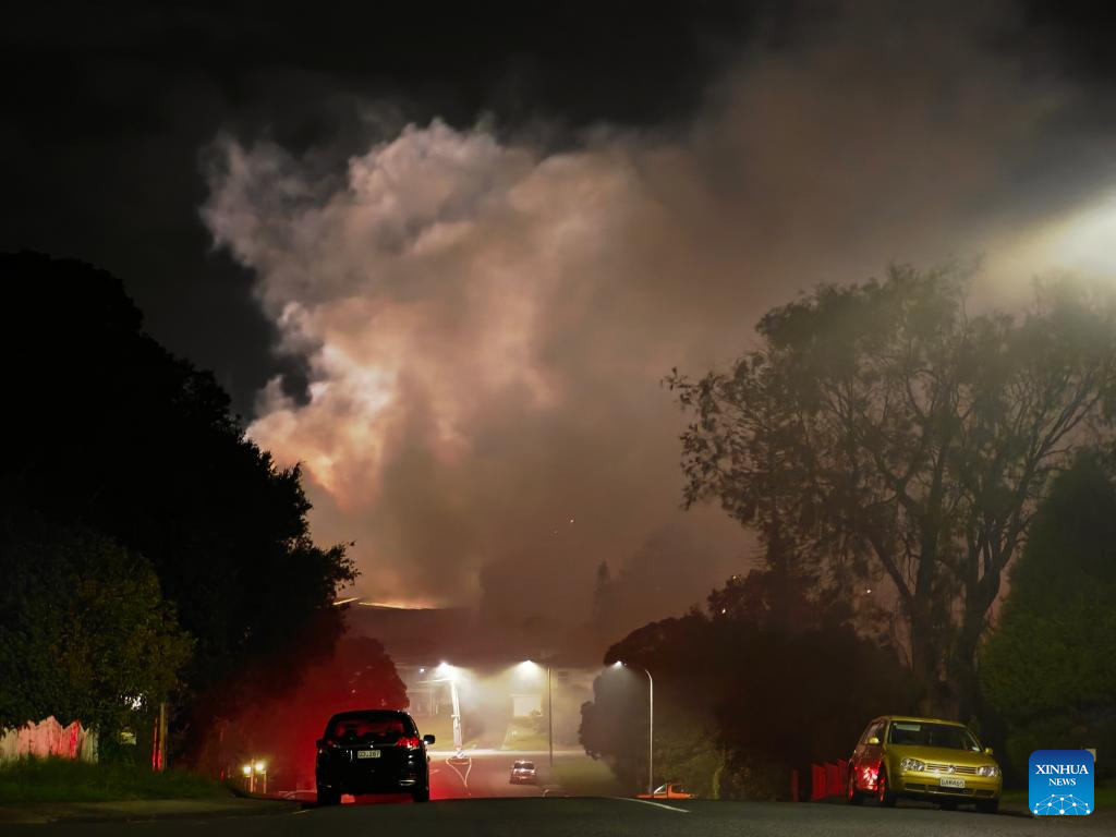 Fire and Emergency New Zealand said in its media release that they were alerted to the fire at a recycling plant in North Shore, Auckland, at 17:24 on Thursday. (Photo by Wu Jiaxiang/Xinhua)