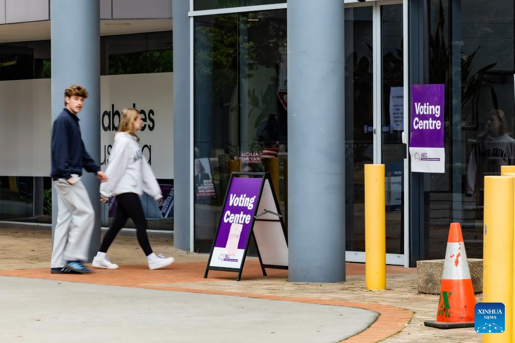 Voters enter a polling station for Australia's general election in Canberra, Australia, on April 26, 2025. Early voting began in Australia's general election on April 22, with about half of the country's 18 million registered voters expected to cast their ballots before election day on May 3. (Photo by Chu Chen/Xinhua)
