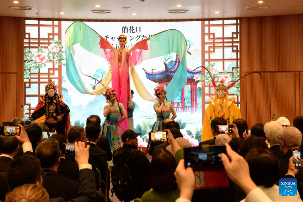 A performance is staged at the opening ceremony of the Sichuan Week of China Pavilion during Expo 2025 Osaka in Osaka, Japan, April 28, 2025. The Sichuan Week of China Pavilion kicked off Monday during Expo 2025 Osaka, with more than 150 guests attending the opening ceremony. (Xinhua/Tu Yifan)