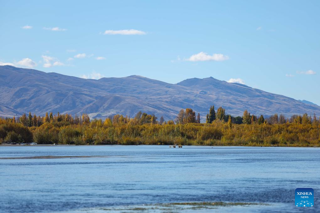 This photo taken on April 26, 2025 shows the autumn scenery in the Clutha River in New Zealand. (Xinhua/Long Lei)
