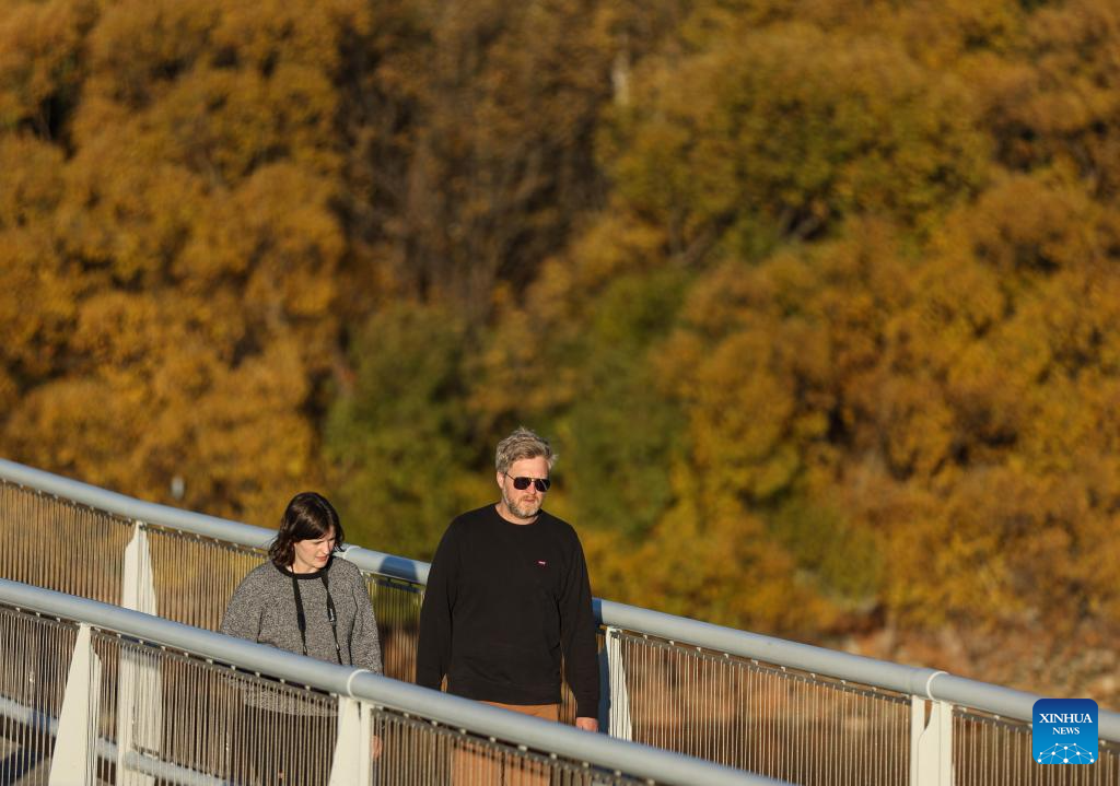 People take a walk in Arrowtown, New Zealand, on April 25, 2025. (Xinhua/Long Lei)