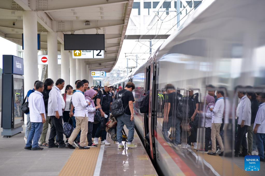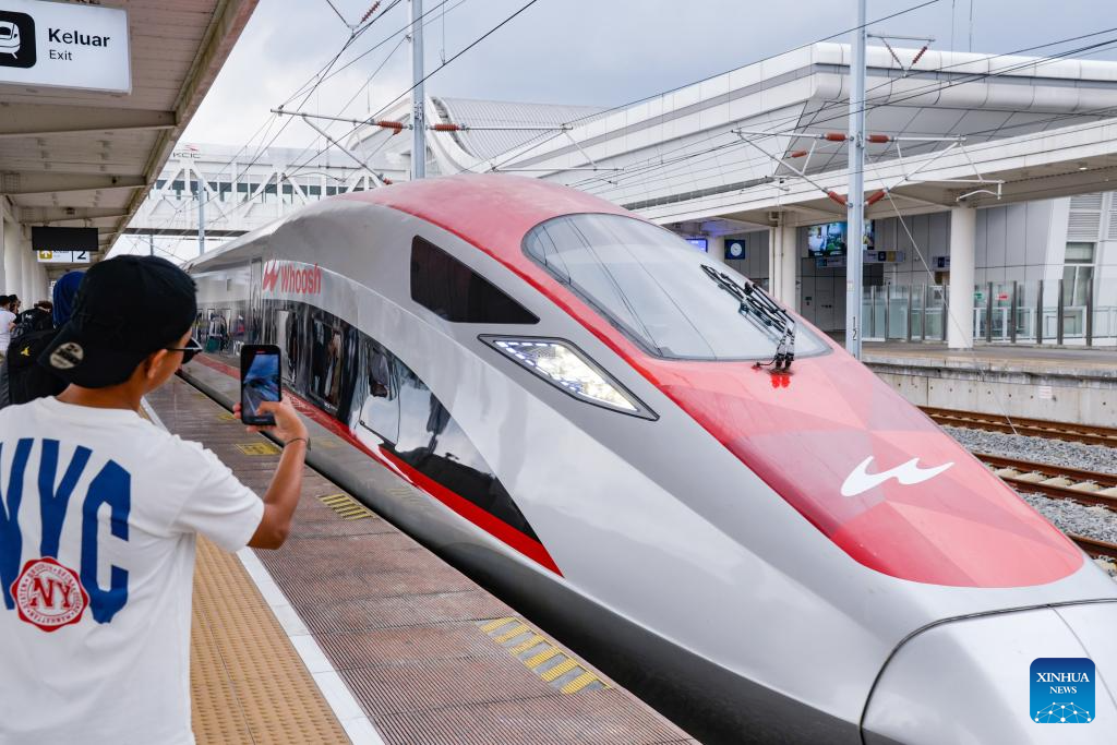 The Jakarta-Bandung High-Speed Railway, locally known as Whoosh, has transported 9 million passengers as of Sunday since its launch on Oct. 17, 2023, PT Kereta Cepat Indonesia-China (KCIC), a joint venture consortium between Indonesian and Chinese firms that constructs and operates the railway, announced on Monday. (Xinhua/Xu Qin)