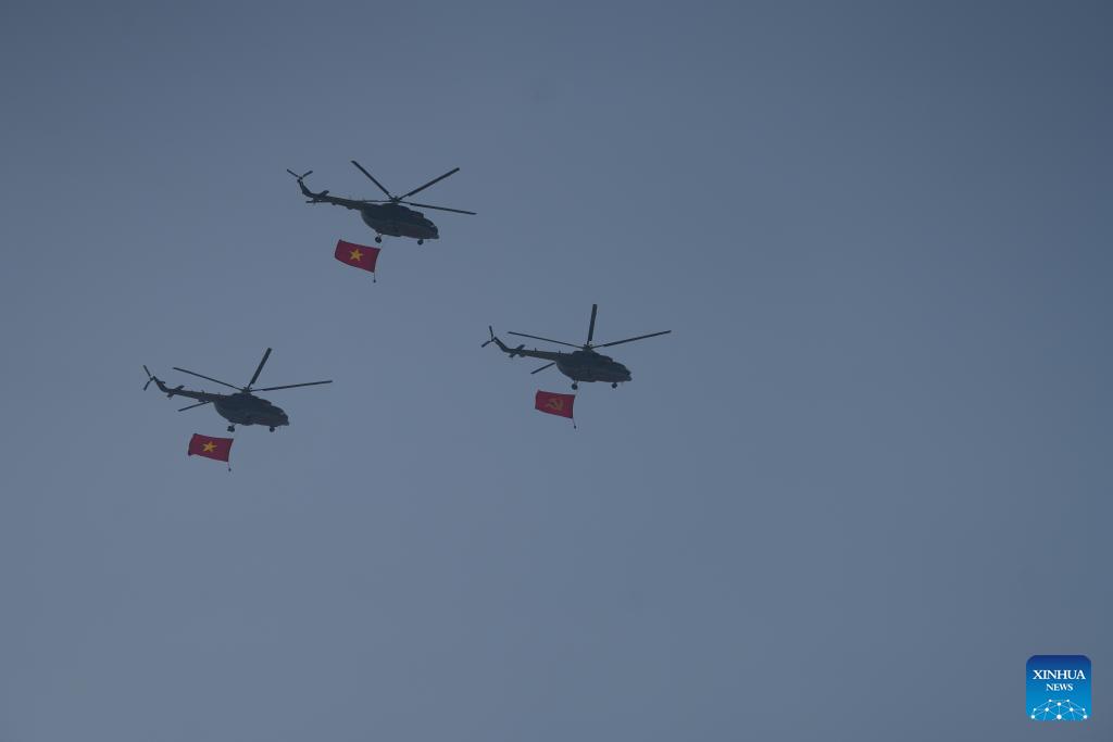 This photo taken on April 30, 2025 shows a scene of a mass march marking the 50th anniversary of the liberation of the South and national reunification in Ho Chi Minh City, Vietnam. Vietnam on Wednesday held a grand ceremony, military parade and mass march in Ho Chi Minh City to mark the 50th anniversary of the liberation of the South and national reunification. Vietnamese leaders, including General Secretary of the Communist Party of Vietnam Central Committee To Lam, President Luong Cuong, Prime Minister Pham Minh Chinh and Chairman of the National Assembly Tran Thanh Man, attended the event along with representatives from various sectors. (Xinhua/Hu Jiali)