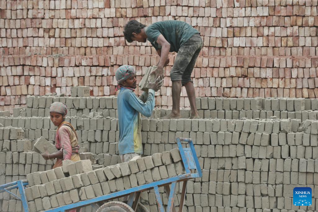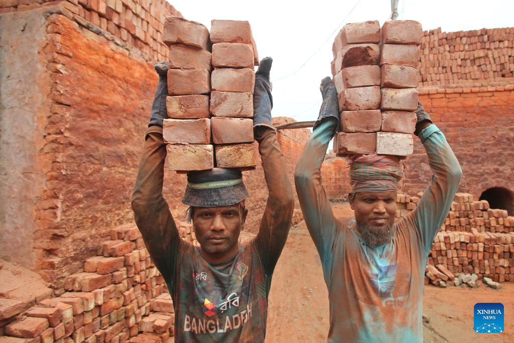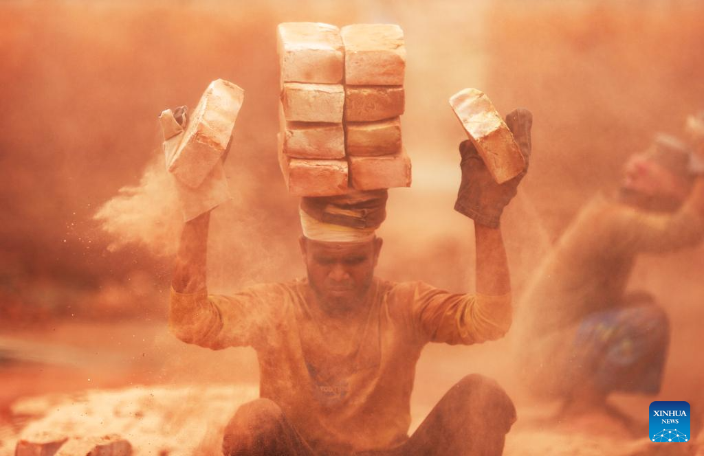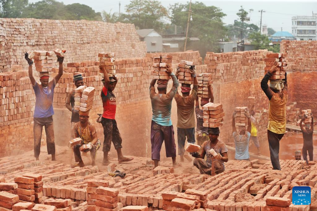People work at a brick factory in Dhaka, Bangladesh, April 30, 2025. Traditional manual brick kilns are widely distributed across rural and suburban areas of Bangladesh, which provide employment for a large labor force. (Photo by Habibur Rahman/Xinhua)