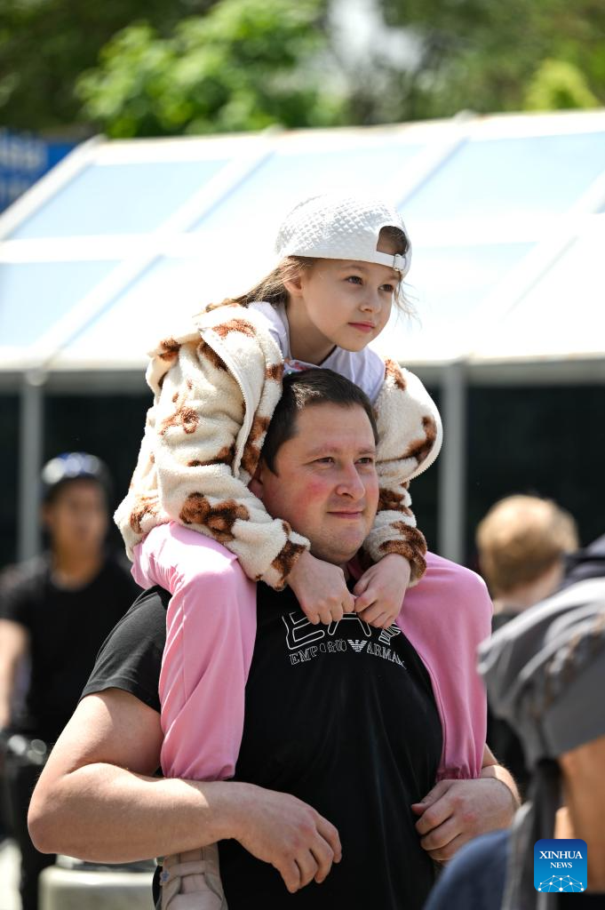 People watch performance during a festival celebrating Kazakhstan's National Unity Day in Almaty, Kazakhstan, on May 1, 2025. (Xinhua/Li Renzi)
