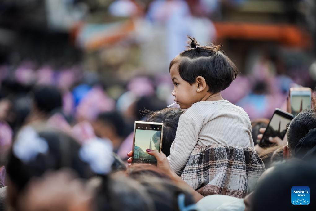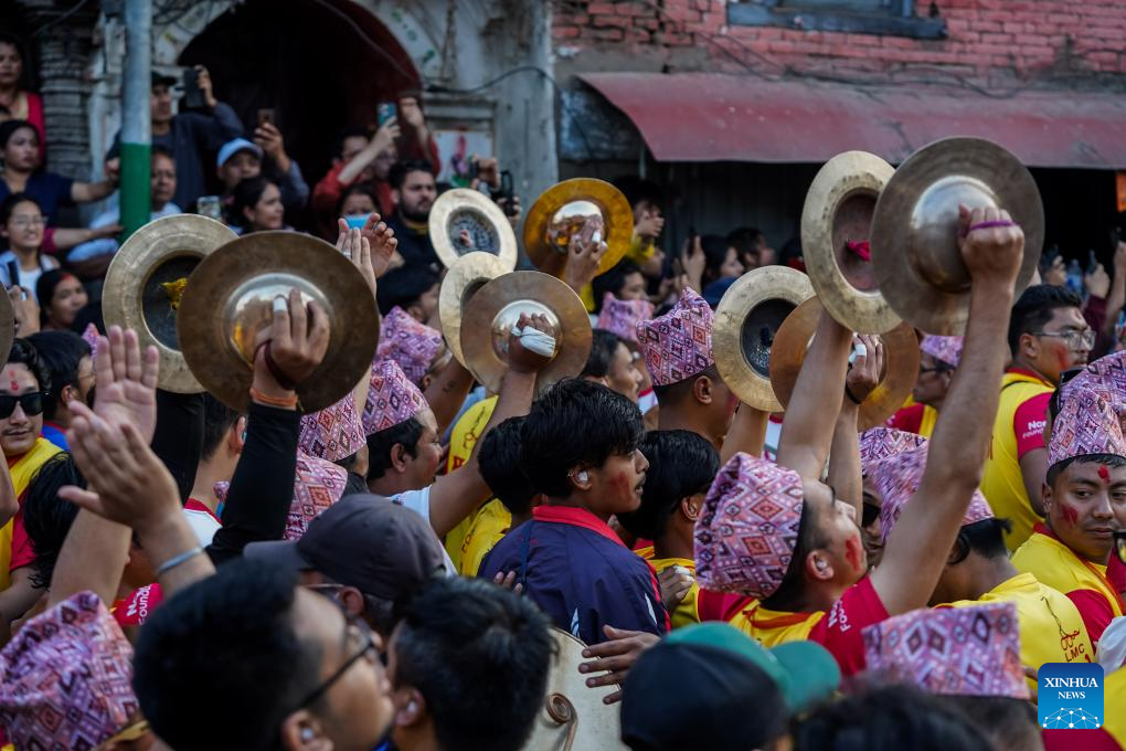 People celebrate the festival of Rato Machhindranath, the god of rain, in Lalitpur, Nepal, May 2, 2025. (Photo by Hari Maharjan/Xinhua)