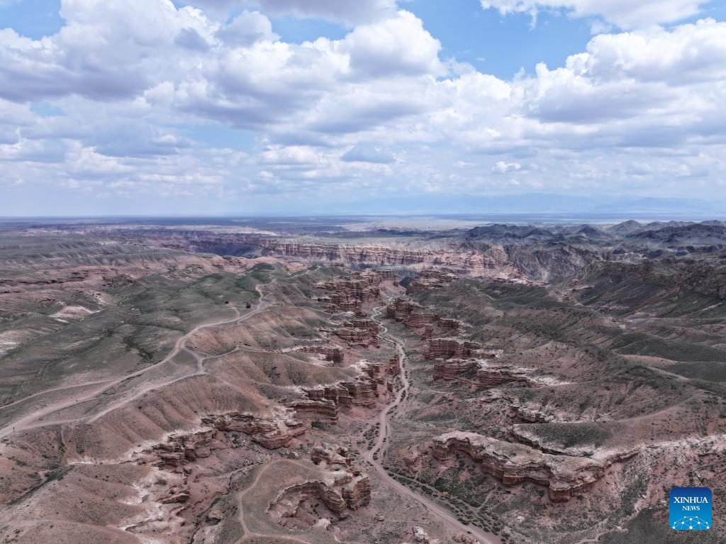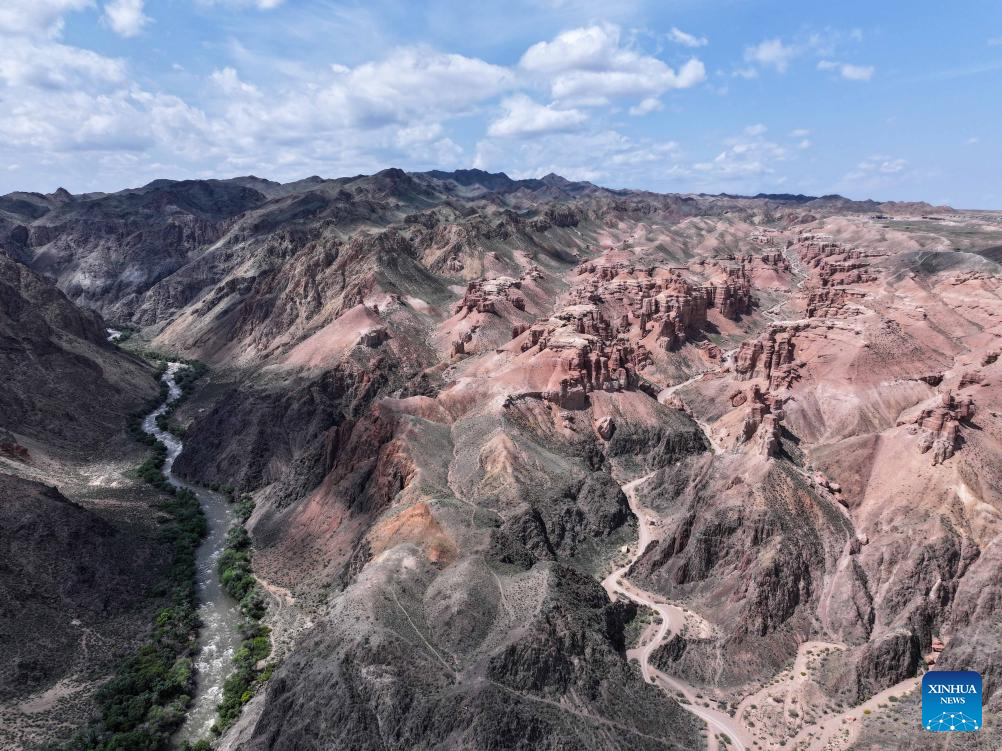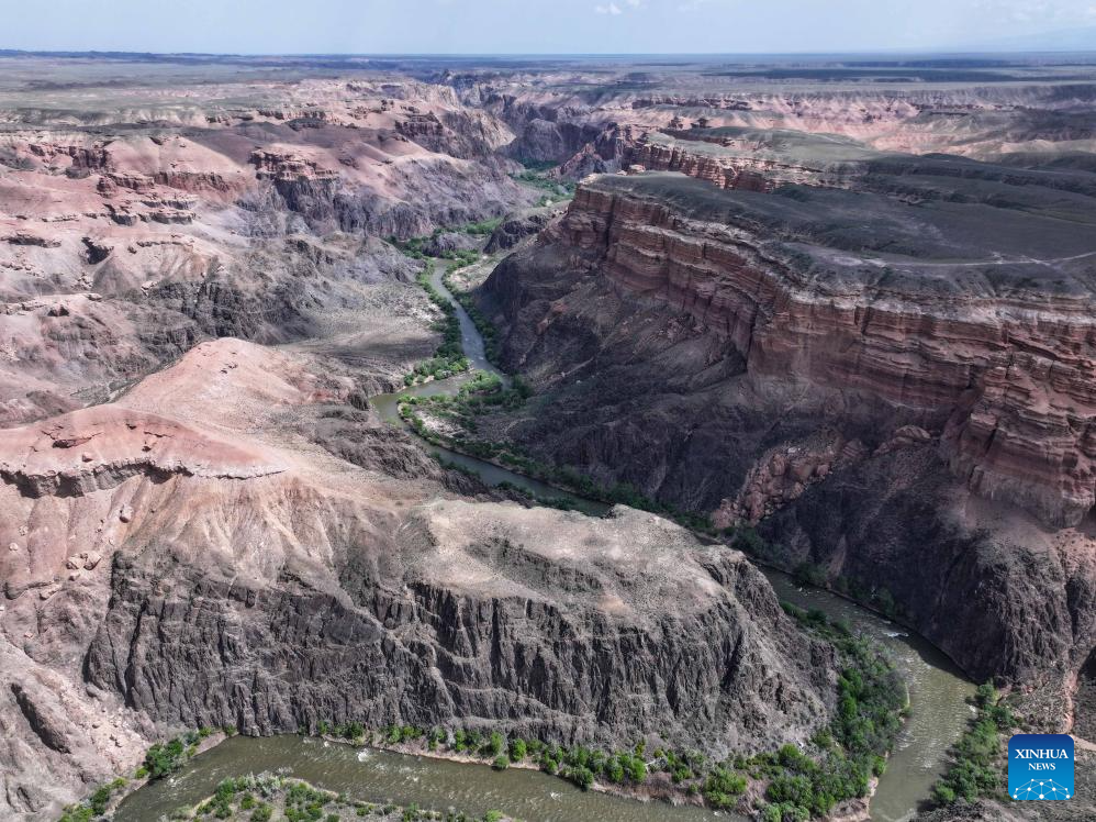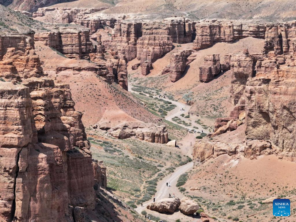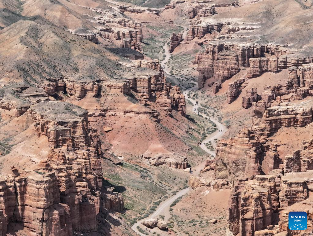 An aerial drone photo taken on May 2, 2025 shows the scenary of the Charyn Canyon in Almaty Region, Kazakhstan. (Xinhua/Li Renzi)