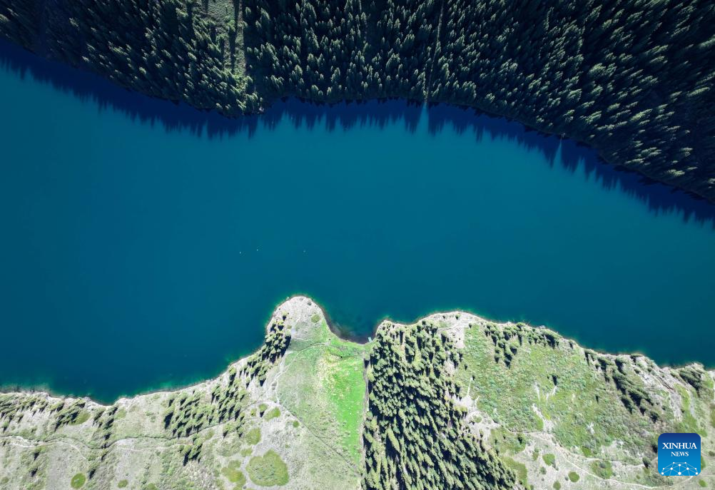 An aerial drone photo taken on May 3, 2025 shows the Kolsai Lakes National Park in Almaty Region, Kazakhstan. (Xinhua/Li Renzi)