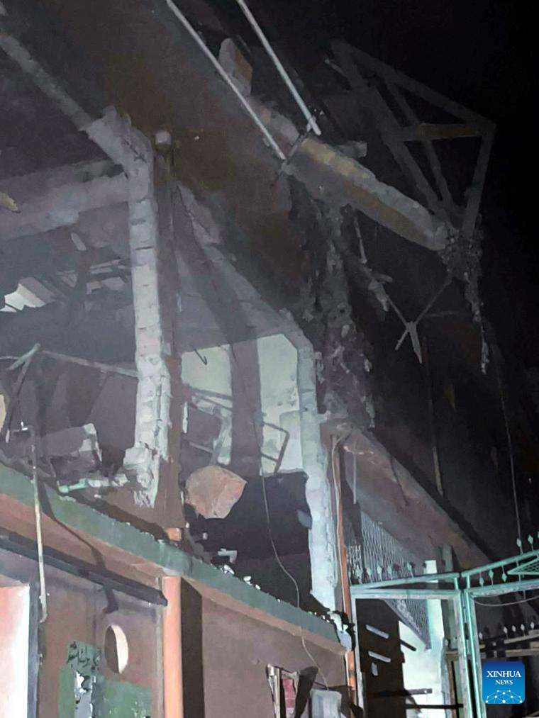 Photo taken with a mobile phone on May 7, 2025 shows a building destroyed in an Indian missile attack in Muzaffarabad, Pakistan-controlled Kashmir. At least three civilians, including a child, were killed and 14 others injured early Wednesday after India fired missiles at five different locations in Pakistan, including Pakistan-controlled Kashmir, said the military. (Str/Xinhua)