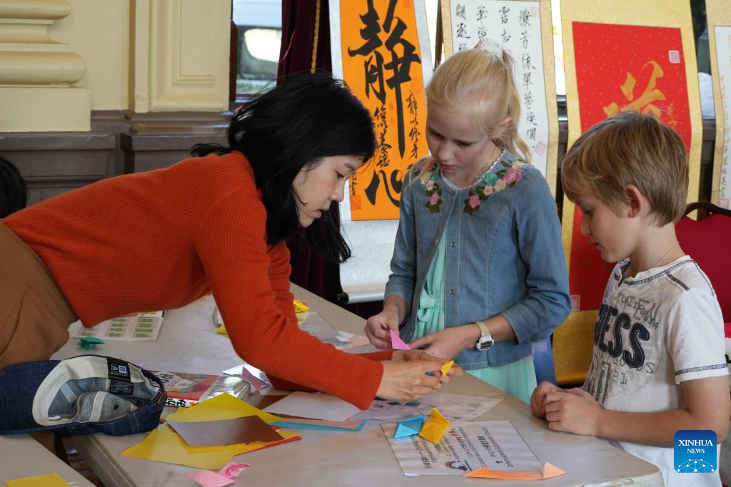 Children make handicrafts at the cultural exhibition area during Mother's Day celebrations in Canberra, Australia on May 11, 2025. Children from various countries and regions gathered in Canberra on Sunday to participate in Mother's Day celebrations. Through singing, dancing, and recitation, they expressed their appreciation and best wishes to their mothers. The event also featured a handicraft area and a multicultural exhibition zone, where parents and children engaged together to explore and experience the cultures of different nations. Today, Australians, like people in many other countries, celebrate Mother's Day on the second Sunday of May. Traditions typically include family gatherings, the giving of gifts, and expressions of gratitude toward mothers and maternal figures. (Photo by Zhang Na/Xinhua)
