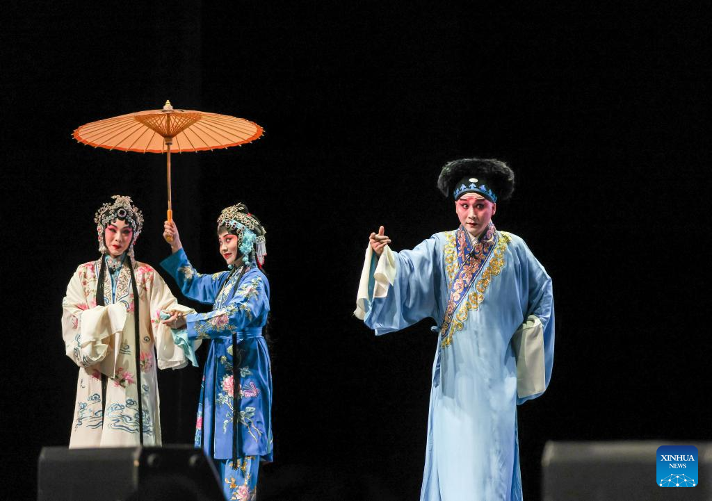 Artists from China's Hubei Provincial Peking Opera Theater perform at the 2025 "Knowing Hubei, Echoes of Peking Opera Around the World" Peking Opera Gala in Auckland, New Zealand, May 9, 2025. The 2025 "Knowing Hubei, Echoes of Peking Opera Around the World" Peking Opera Gala was staged at the Civic Theater in New Zealand's largest city Auckland on Friday evening, receiving an enthusiastic response from local audiences.