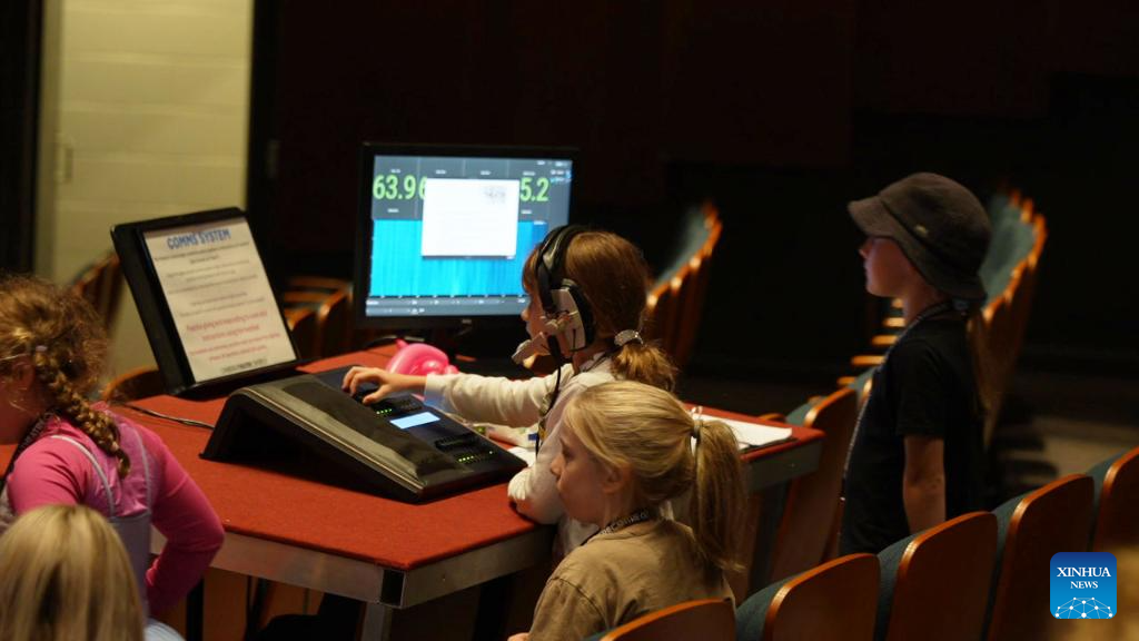 A young girl operates a lighting console, experiencing the work of a lighting technician, during an open day event of the Canberra Theater Center in Canberra, Australia, on May 10, 2025. The Canberra Theater Center opened its doors to the public on Saturday as part of its 60th anniversary celebrations. (Photo by Zhang Na/Xinhua)