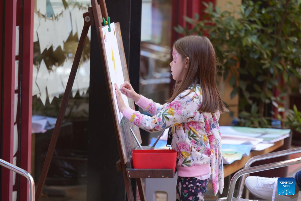 A girl draws a picture at the activity area during an open day event of the Canberra Theater Center in Canberra, Australia, on May 10, 2025. The Canberra Theater Center opened its doors to the public on Saturday as part of its 60th anniversary celebrations. (Photo by Zhang Na/Xinhua)