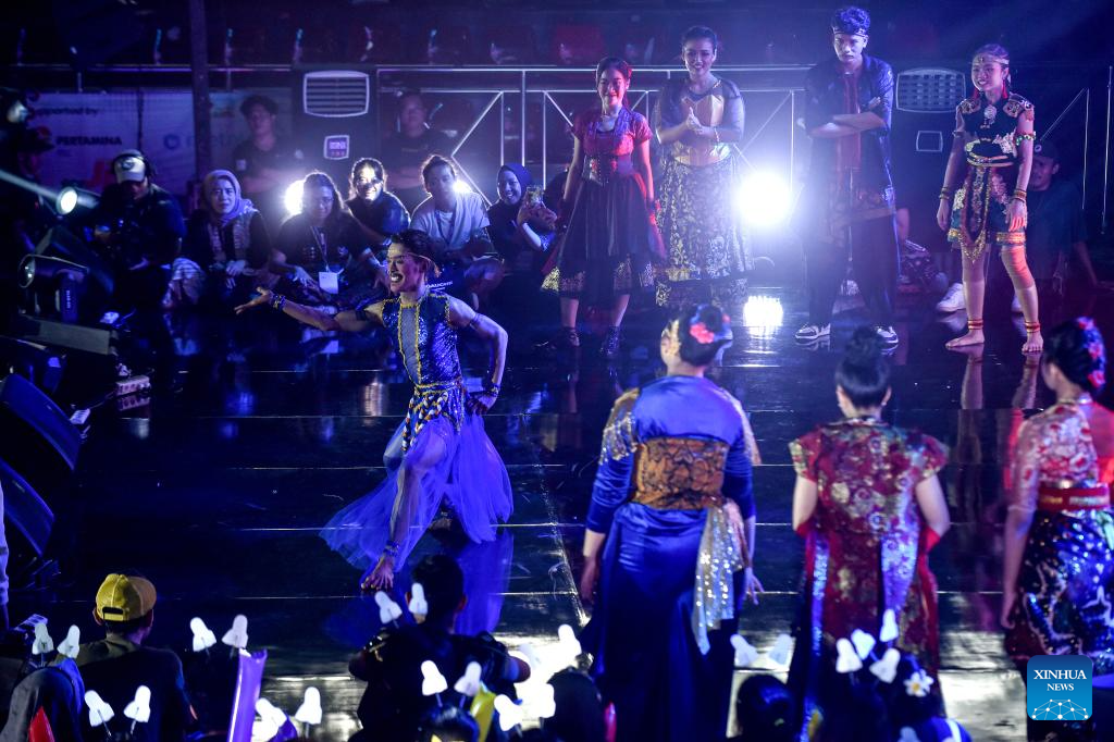 Dancers perform during the Indonesia World Dance Festival (IWDF) 2025 at Bulungan Youth Center in Jakarta, Indonesia, May 11, 2025. (Xinhua/Agung Kuncahya B.)