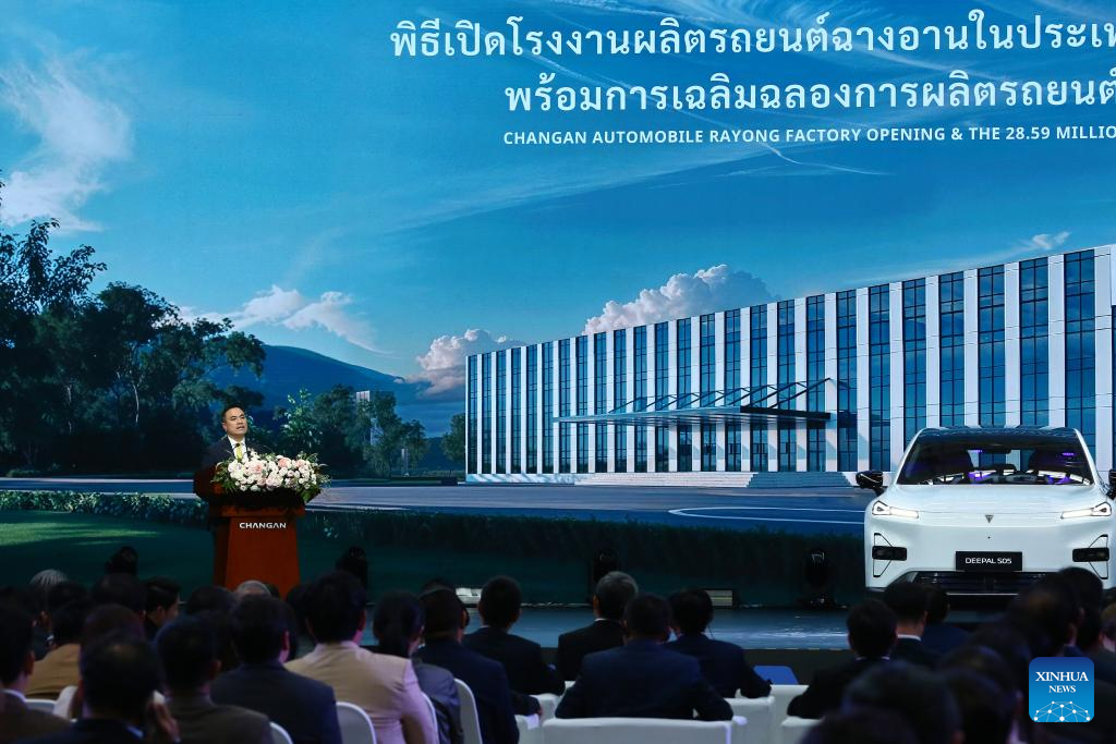 This photo taken on May 16, 2025 shows the inauguration of the Thailand plant of China's carmaker Changan Automobile in Rayong, Thailand. (Xinhua/Sun Weitong)