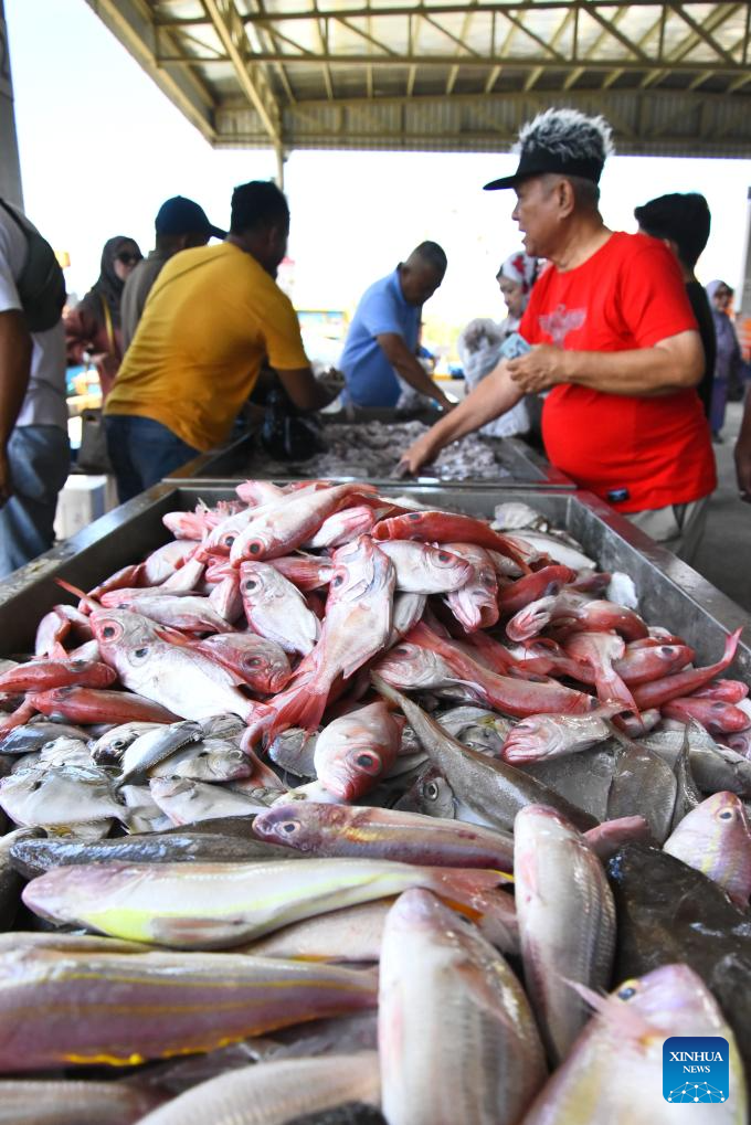 People visit the Brunei Fish Carnival at Muara Fish Port in Brunei, May 15, 2025. The carnival took place here on Wednesday, having attracted over 30 local fisheries-related businesses and vendors. (Xinhua/Li Meng)