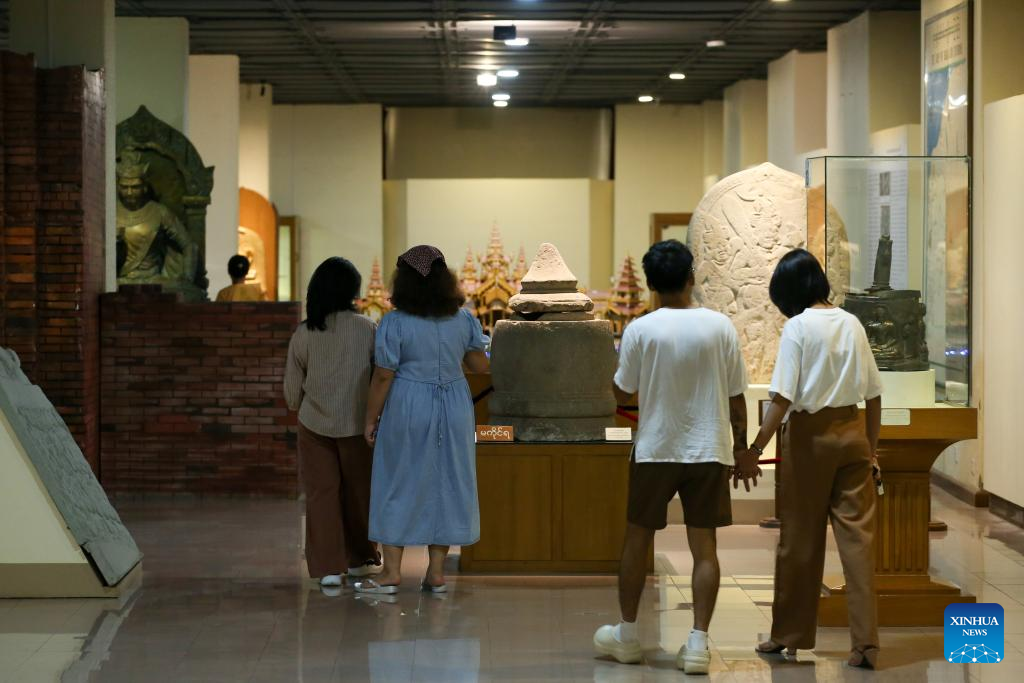 People visit the National Museum of Myanmar in Yangon, Myanmar on May 18, 2025. On International Museum Day, the National Museum in Yangon welcomed visitors with quiet excitement as people wandered through its storied halls. (Xinhua/Myo Kyaw Soe)