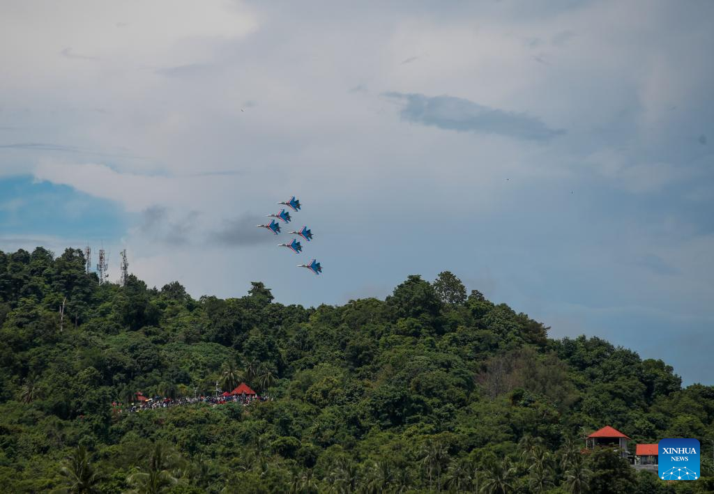 Russian Knights Aerobatic Team performs an aerobatic show at the opening ceremony of the 17th edition of the Langkawi International Maritime and Aerospace Exhibition (LIMA) in Langkawi, Malaysia, May 20, 2025. (Xinhua/Ma Ping)