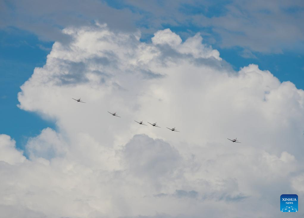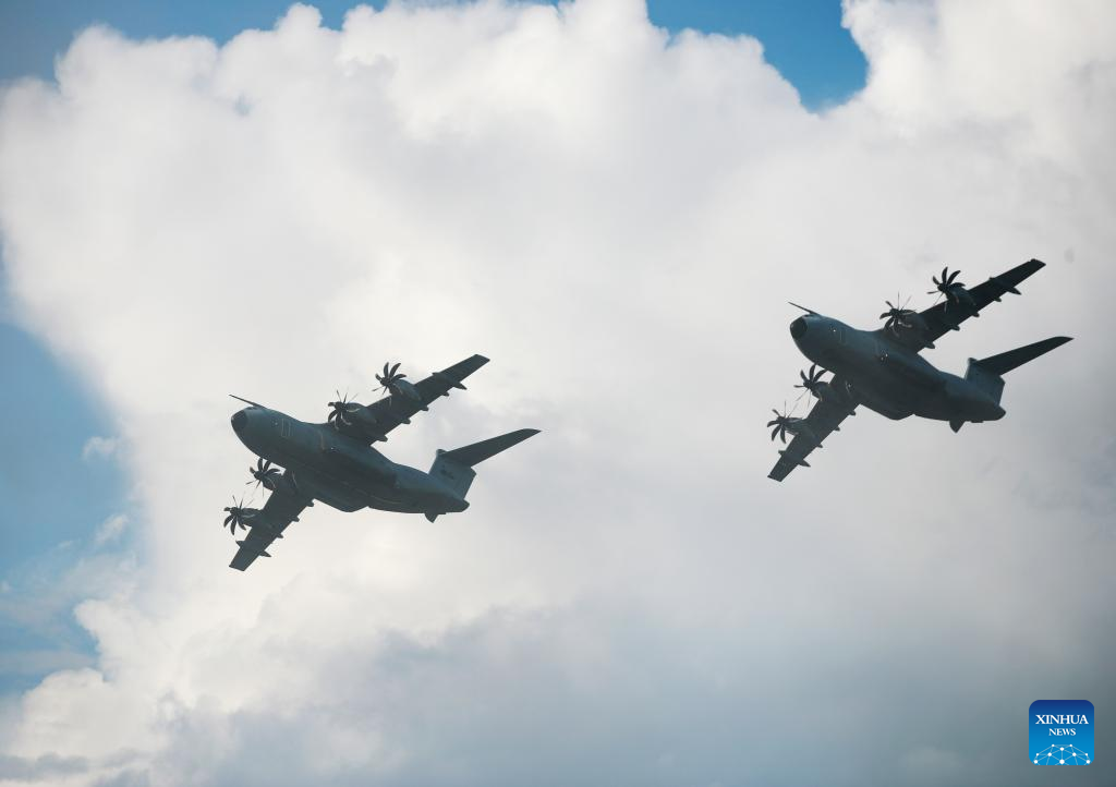 Aircraft are about to take off at the opening ceremony of the 17th edition of the Langkawi International Maritime and Aerospace Exhibition (LIMA) in Langkawi, Malaysia, May 20, 2025. The 17th edition of the Langkawi International Maritime and Aerospace Exhibition (LIMA) kicked off here on Tuesday, with defense and associated companies from around the globe eyeing a higher profile in Asia's defense sector.(Xinhua/Cheng Yiheng)