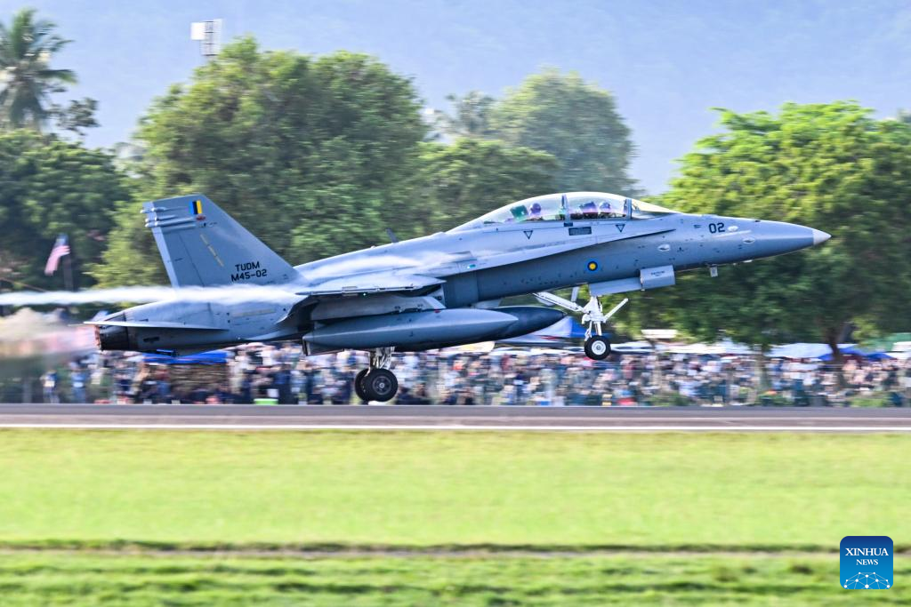 An aircraft preparing for an aerial demonstration is pictured during the opening ceremony of the 17th edition of the Langkawi International Maritime and Aerospace Exhibition (LIMA) in Langkawi, Malaysia, May 20, 2025. The 17th edition of the Langkawi International Maritime and Aerospace Exhibition (LIMA) kicked off here on Tuesday, with defense and associated companies from around the globe eyeing a higher profile in Asia's defense sector.(Xinhua/Ma Ping)