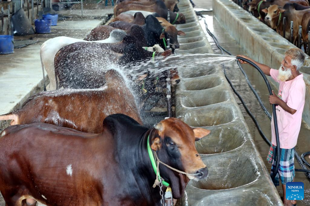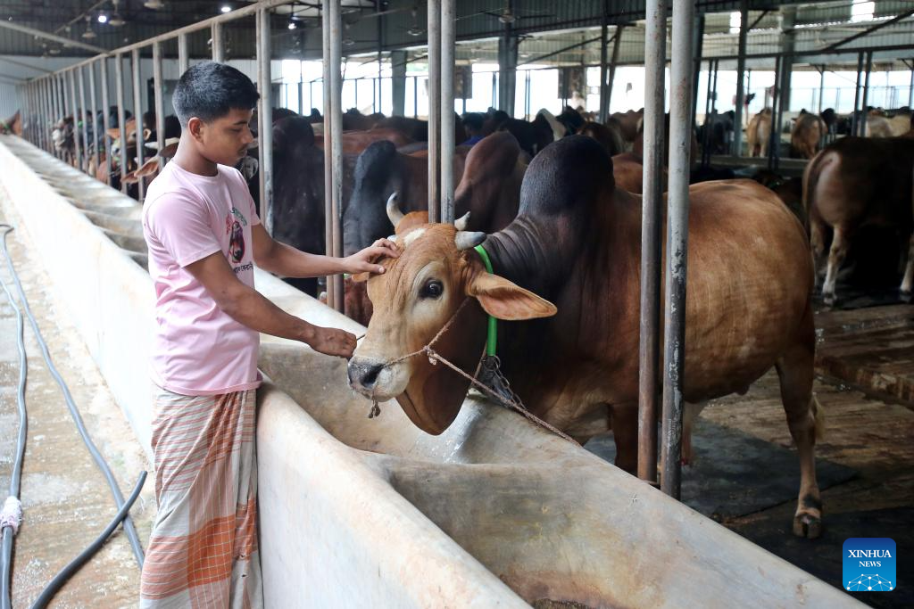 This photo taken on May 20, 2025 shows the scene of a cattle farm in Dhaka, Bangladesh. Nearly 13 million sacrificial animals have been prepared for the upcoming Eid al-Adha festival in Bangladesh. (Photo by Habibur Rahman/Xinhua)
