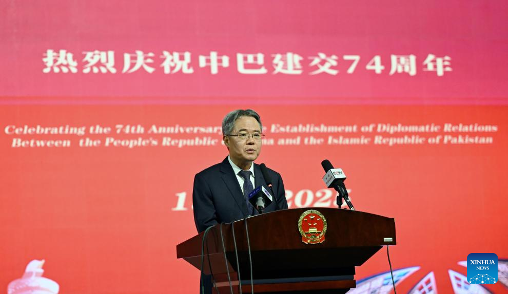 Chinese Ambassador to Pakistan Jiang Zaidong speaks during a ceremony marking the 74th anniversary of the establishment of diplomatic ties between China and Pakistan in Islamabad, Pakistan, on May 21, 2025. (Xinhua/Ahmad Kamal)