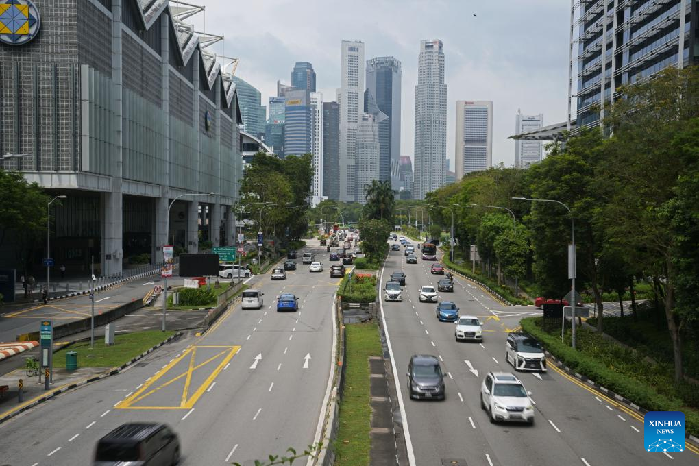 This photo taken on May 22, 2025 shows the skyline in Singapore. Singapore's economy expanded 3.9 percent in the first quarter from a year earlier, easing from 5.0 percent growth in the previous quarter, official data showed on Thursday. (Photo by Then Chih Wey/Xinhua)