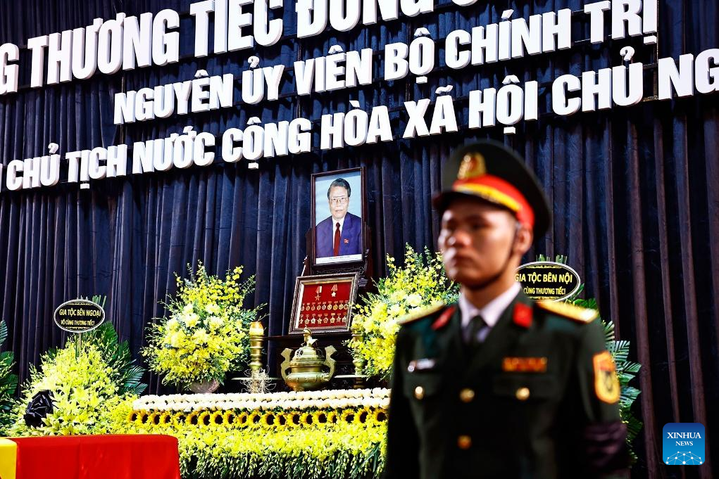 This photo taken on May 24, 2025 shows a respect-paying ceremony for former Vietnamese President Tran Duc Luong in Hanoi, the capital of Vietnam. A respect-paying ceremony for former Vietnamese President Tran Duc Luong began on Saturday morning at the National Funeral Hall in the capital Hanoi, Vietnam News Agency (VNA) reported. (VNA via Xinhua)