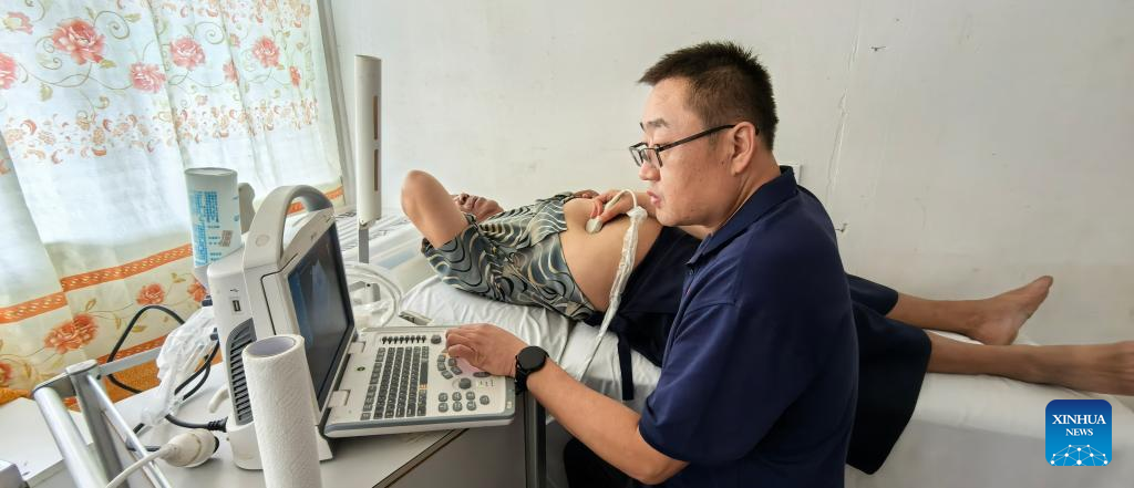 Chinese doctor Tang Jiande performs an ultrasound examination for a local patient on the Eua Island, Tonga, on May 22, 2025. (Xinhua)