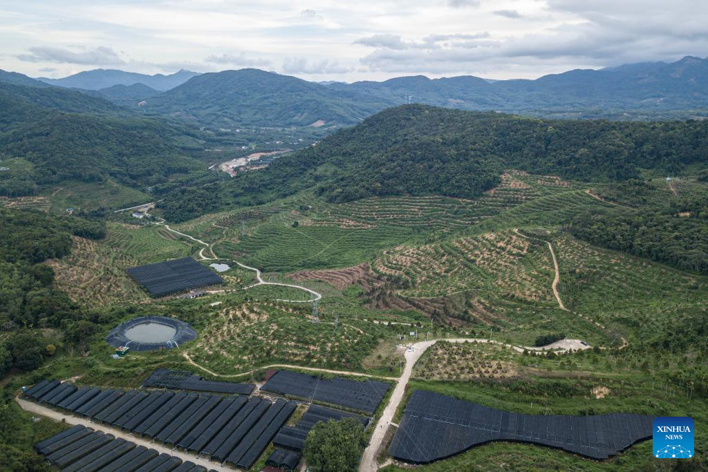 An aerial drone photo taken on May 24, 2025 shows a durian industry park in Baoting Li and Miao Autonomous County, south China's Hainan Province. In recent years, Baoting Li and Miao Autonomous County in Hainan Province has vigorously developed its durian planting industry, with the cultivation area continuously expanding. By the end of 2024, the durian planting area in Baoting had exceeded 666.7 hectares. The growing durian industry has become a new growth point for the local economy and a new support for rural revitalization. (Xinhua/Pu Xiaoxu)