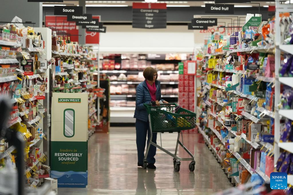 A customer shops for groceries at a supermarket in Canberra, Australia, May 29, 2025. Australia's annual rate of inflation remained steady at 2.4 percent for the third consecutive month in April, according to official figures. (Photo by Zhang Na/Xinhua)