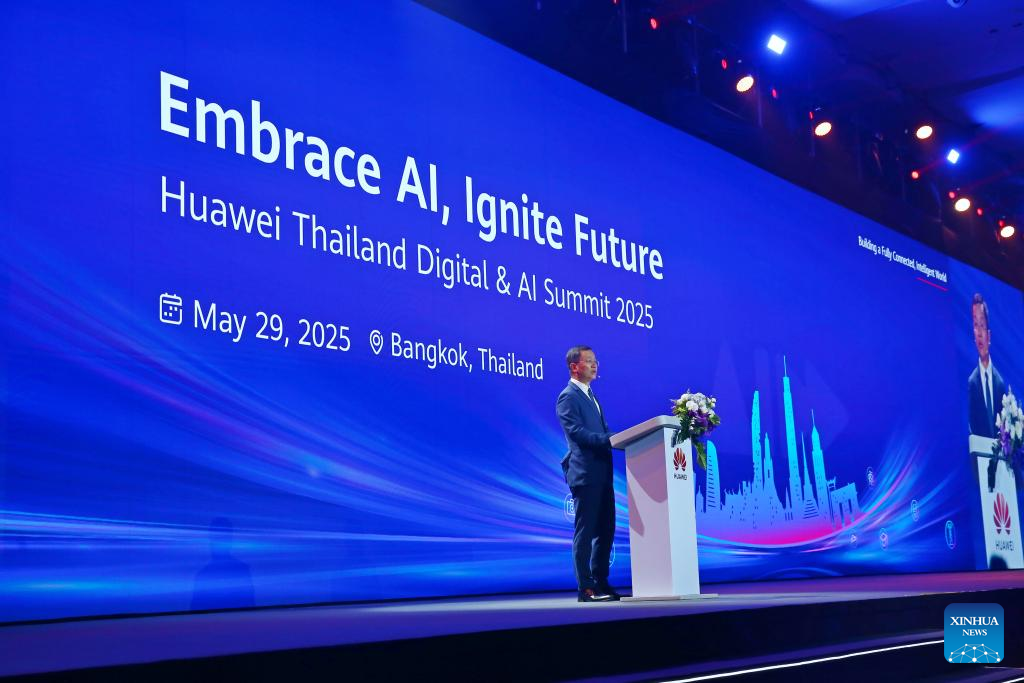 David Li, CEO of Huawei Technologies (Thailand), addresses the Huawei Thailand Digital & AI Summit 2025 in Bangkok, Thailand, May 29, 2025. (Xinhua/Sun Weitong)