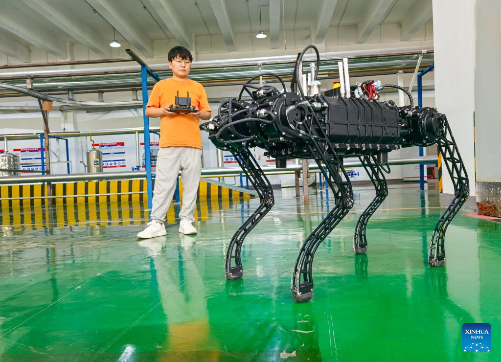 A technician adjusts an explosion-proof quadruped robot at Sevnce Robotics in southwest China's Chongqing Municipality, May 8, 2025. In recent years, Chongqing has taken multiple measures to promote the development of robot industry. Now it has formed a whole robot industry chain covering R&D, complete machine manufacturing, testing, system integration, parts matching, talent training and application services.