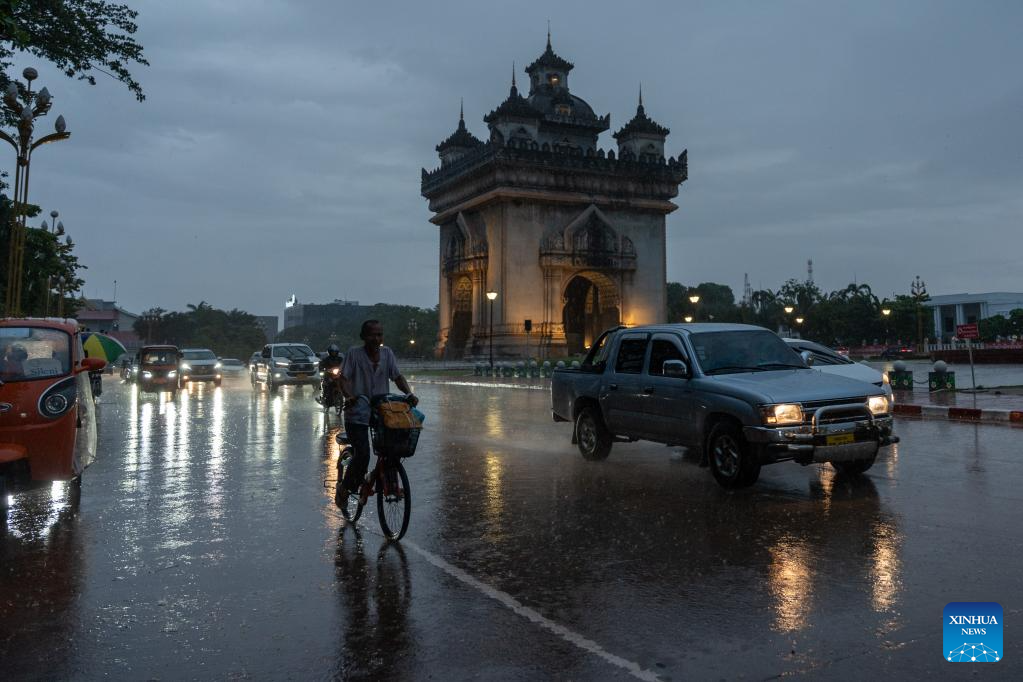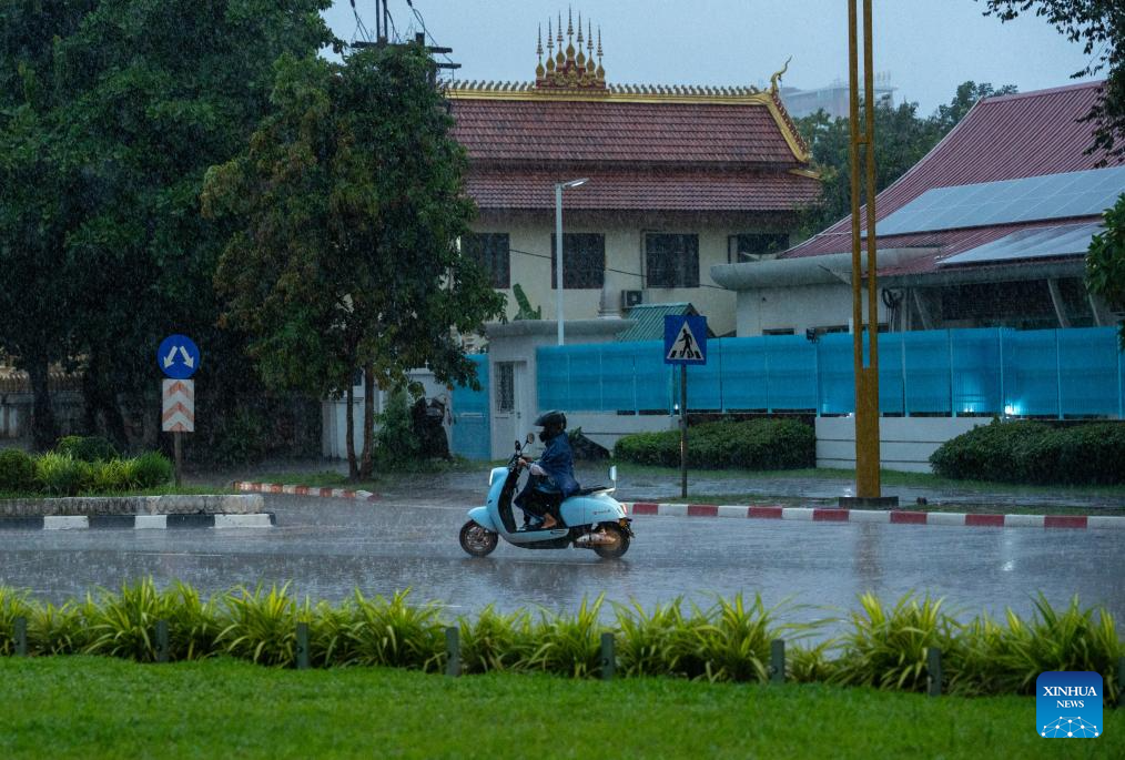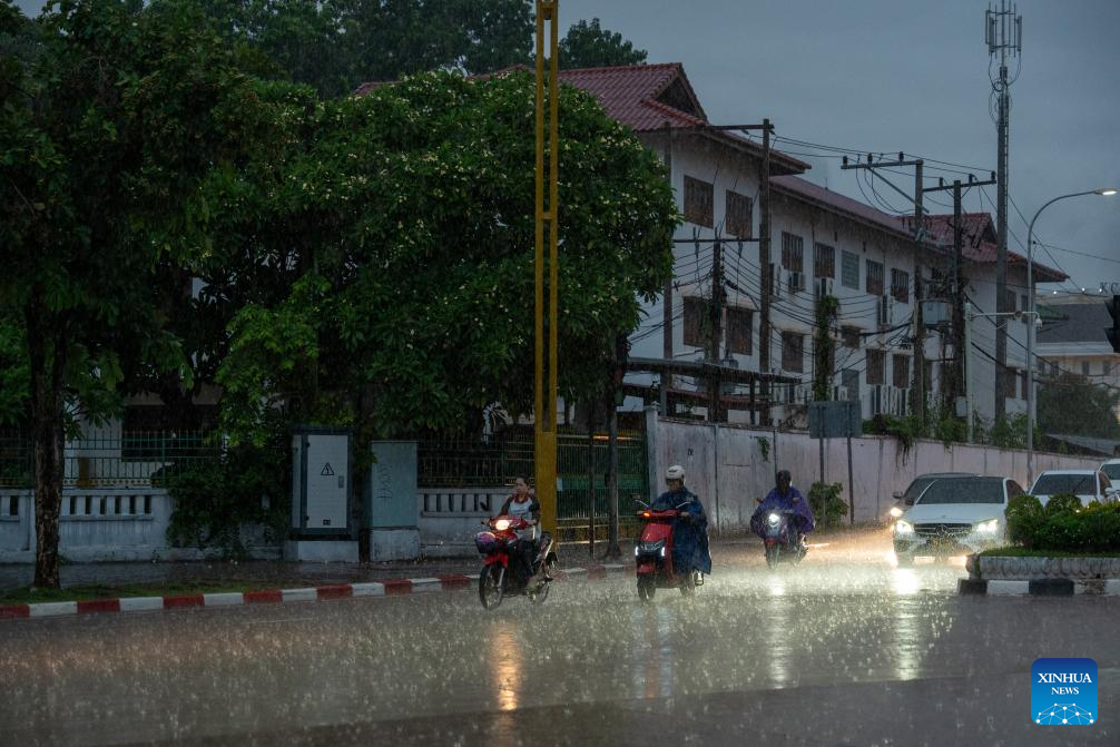 This photo taken on May 30, 2025 shows the rainy weather in Vientiane, capital of Laos. (Photo by Kaikeo Saiyasane/Xinhua)