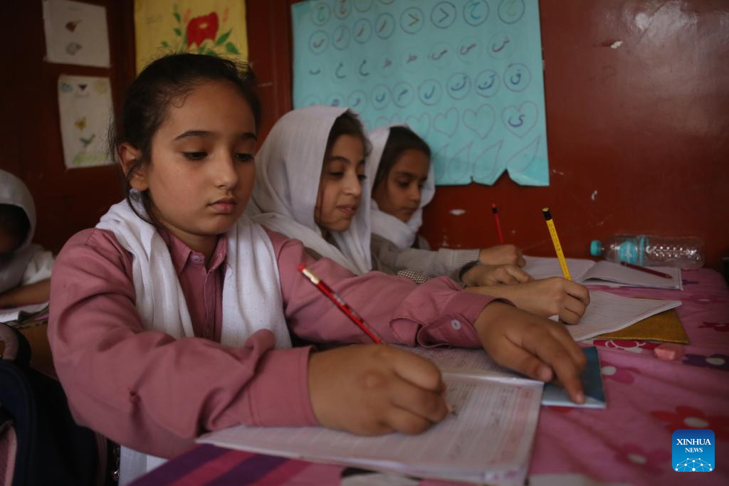 Afghan girls attend a class at a private school in Kabul, the capital of Afghanistan, May 26, 2025. (Photo by Saifurahman Safi/Xinhua)