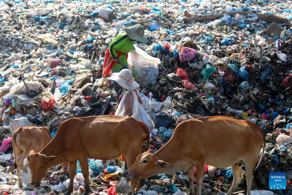 Workers collect plastic garbage at Alue Lim landfill before the upcoming World Environment Day in Lhokseumawe, Aceh province, Indonesia, May 30, 2025. This year's World Environment Day falls on June 5, focusing on combating plastic pollution. (Photo by Fachrul Reza/Xinhua)