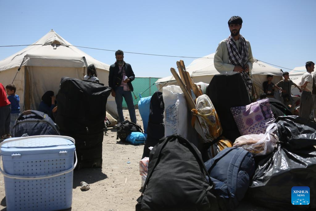 Afghans are seen at a temporary camp in Kabul, capital of Afghanistan, June 2, 2025. A total of 500,000 Afghan refugees have returned to their homeland Afghanistan from neighboring Pakistan and Iran in April and May, according to the United Nations High Commissioner for Refugees (UNHCR). (Photo by Saifurahman Safi/Xinhua)