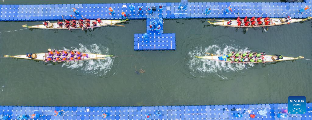 Villagers compete during a dragon boat race at Xixi National Wetland Park in Hangzhou, east China's Zhejiang Province, on May 31, 2025. The Dragon Boat Festival, also known as Duanwu Festival, is a traditional Chinese holiday to commemorate ancient Chinese poet Qu Yuan from the Warring States Period (475-221 B.C.). Celebrated on the fifth day of the fifth month of the Chinese lunar calendar, the festival falls on May 31 this year. (Xinhua/Huang Zongzhi)