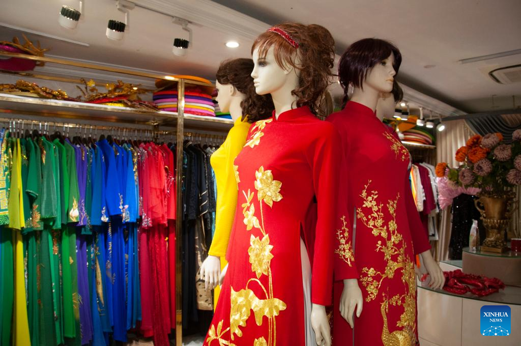 This photo taken on June 2, 2025 shows Ao Dai, Vietnam's traditional long dress, in Hanoi, Vietnam. (Photo by Dang Hong Dung/Xinhua)