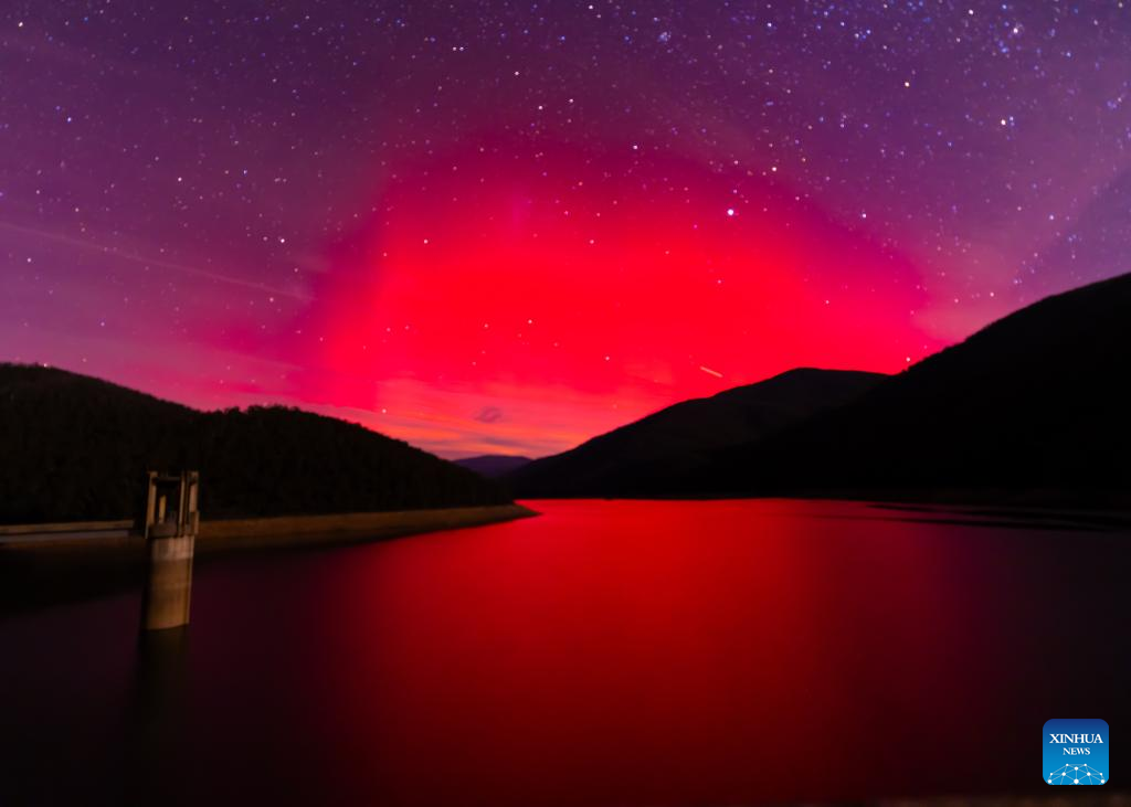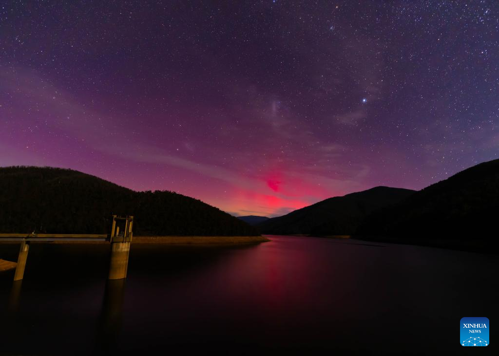 This photo taken on June 1, 2025 shows the aurora seen at the outskirts of Canberra, Australia. (Photo by Chu Chen/Xinhua)