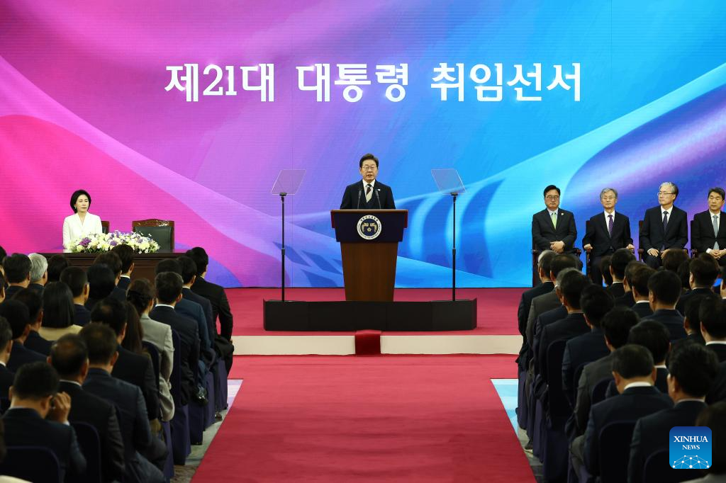 SEOUL, June 4 (Xinhua) -- Lee Jae-myung was sworn in as South Korea's new president on Wednesday after formally beginning his single five-year term earlier in the day.