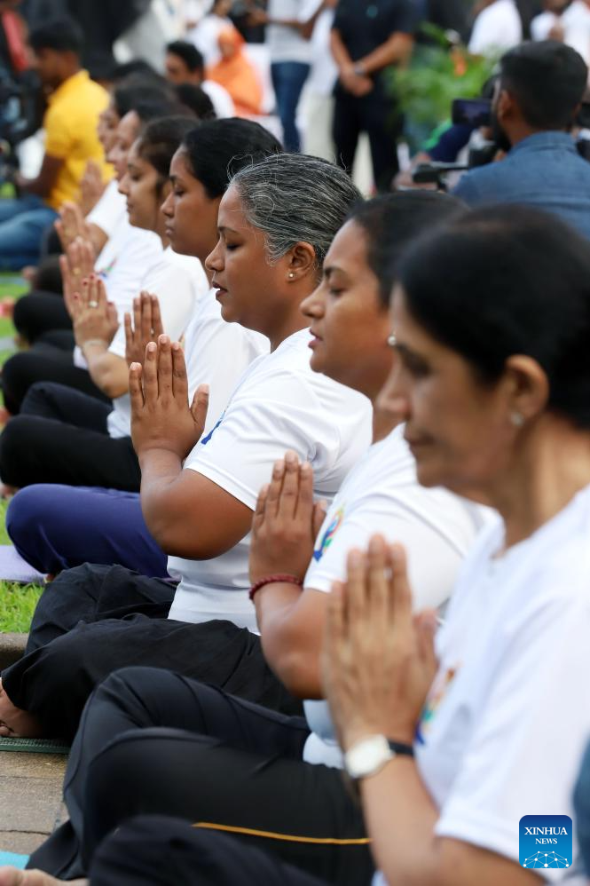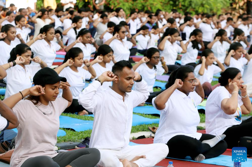 People take part in a mass yoga session at Independence Square in Colombo, Sri Lanka, on June 21, 2025, the International Day of Yoga. (Photo by Thilina Kaluthotage/Xinhua)