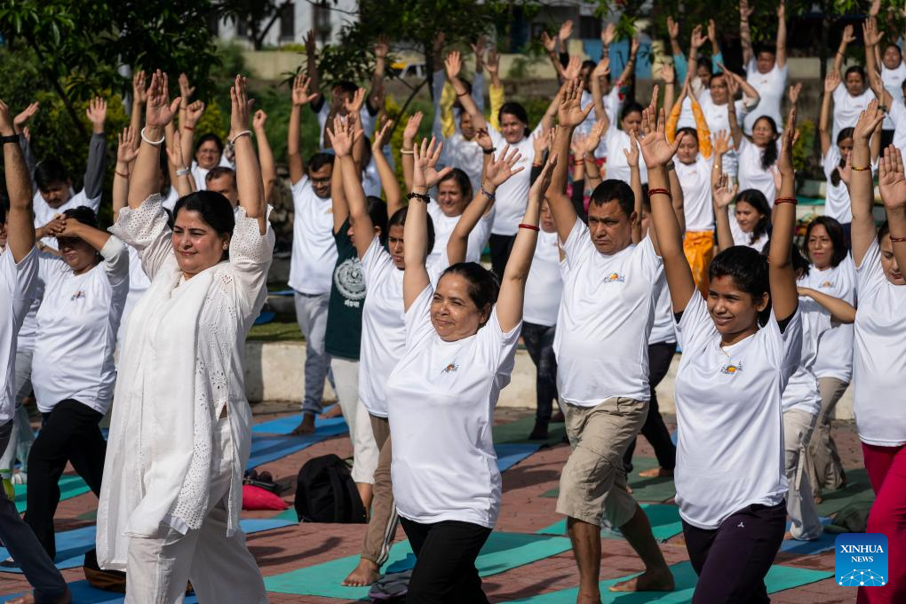 Participants take part in a yoga session to celebrate the International Day of Yoga in Kathmandu, Nepal, June 21, 2025. (Photo by Hari Maharjan/Xinhua)