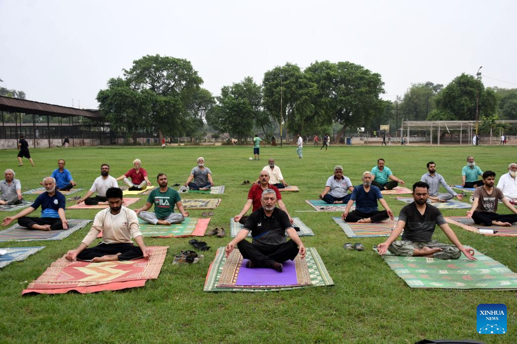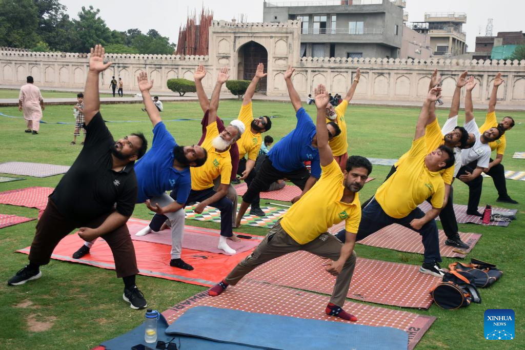 Participants take part in a yoga performance to celebrate the International Day of Yoga in Lahore, Pakistan, on June 21, 2025. (Photo by Sajjad/Xinhua)