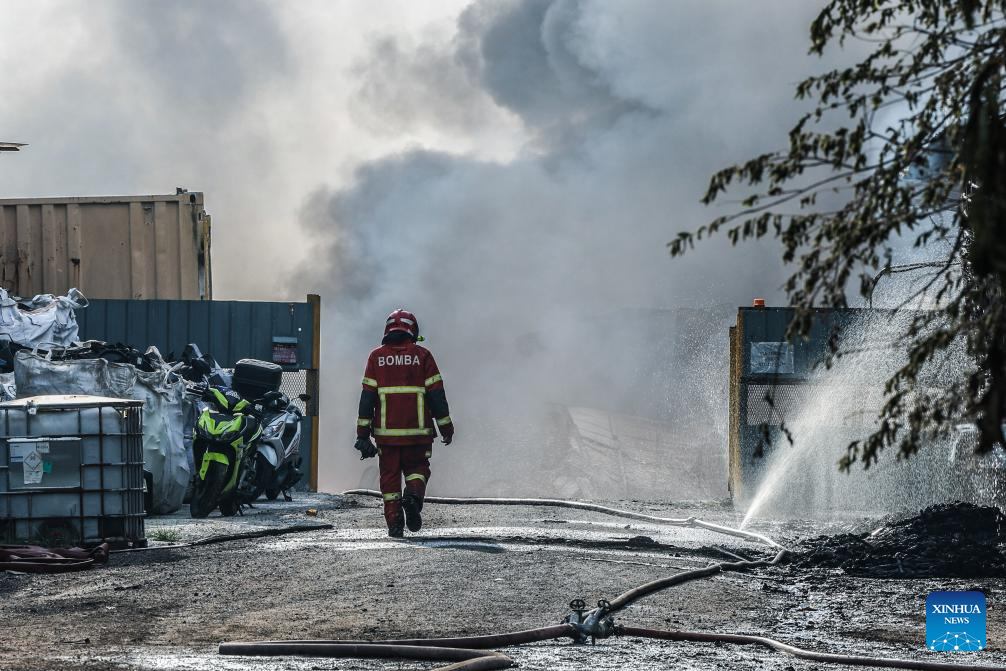 KUALA LUMPUR, June 21 (Xinhua) -- A huge fire erupted at an industrial facility storing engine oil and lorries in Johor state, sending huge plumes of smoke into the air and forcing the evacuation of those living nearby, authorities said on Saturday.