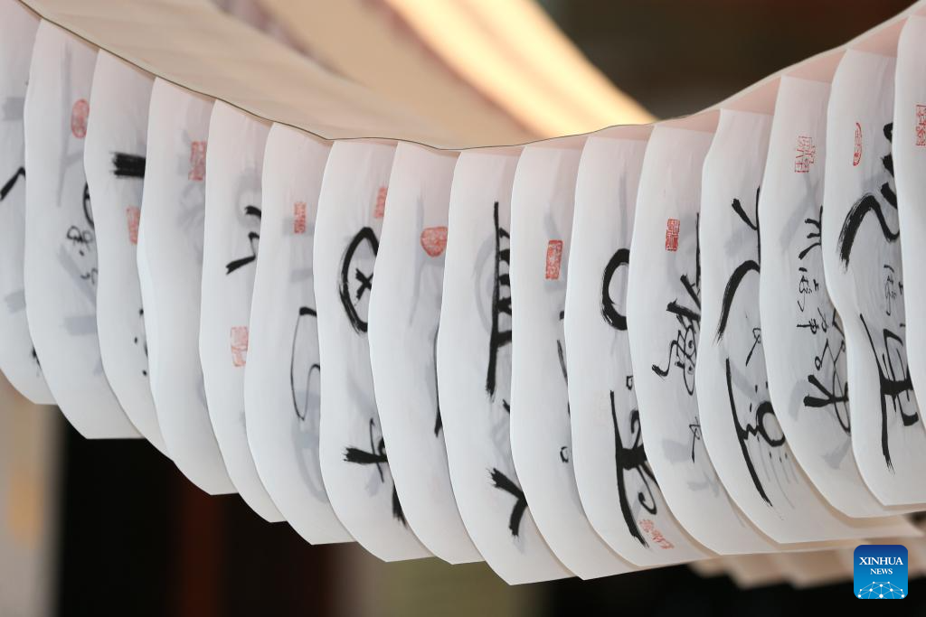 A piece of artwork is pictured at an exhibition during the China Intangible Cultural Heritage Week held at the BRAC University in Dhaka, Bangladesh on June 22, 2025. The five-day China Intangible Cultural Heritage Week kicked off here on Sunday. The exhibition, main part of the event, featured dozens of outstanding Chinese artworks, including elegant lady paintings and Dongba pictographic calligraphy, as well as some Chinese intangible cultural heritage crafts. (Photo by Habibur Rahman/Xinhua)